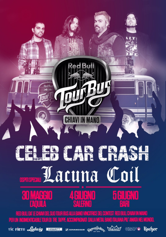 [imageeffect url=”https://emptyspiral.net/wp-content/uploads/2015/05/red-bull-tour-2015.jpg” type=”frame,” width=”150″ height=”214″ align=”alignleft” target=”_self” lightbox=”yes” overlay_state=”hover” alt=”Red Bull Tourbus”]Lacuna Coil have announced today that they are special guest stars on the Red Bull Tourbus for the “Celeb Car Crash”.